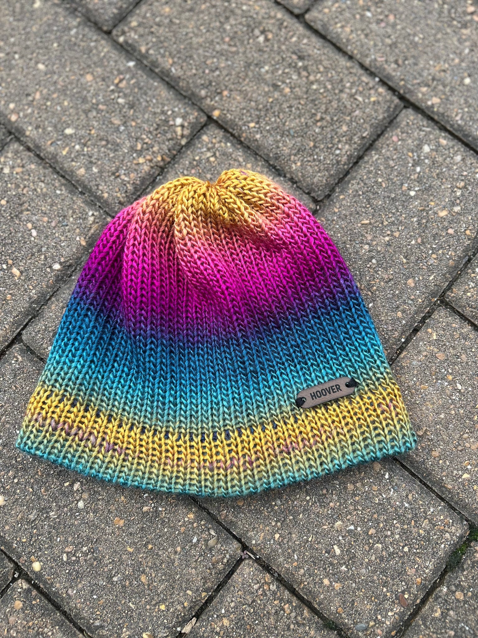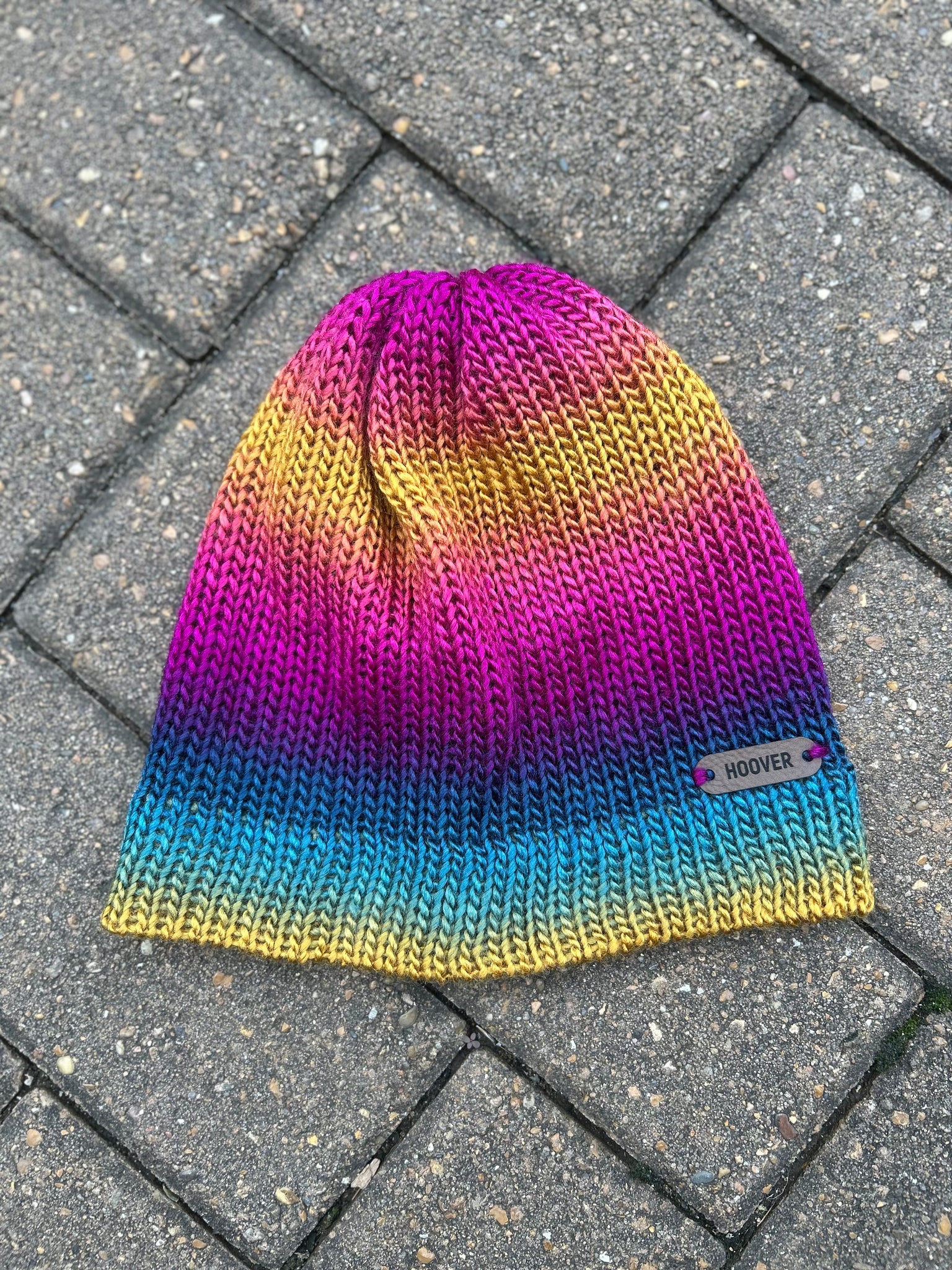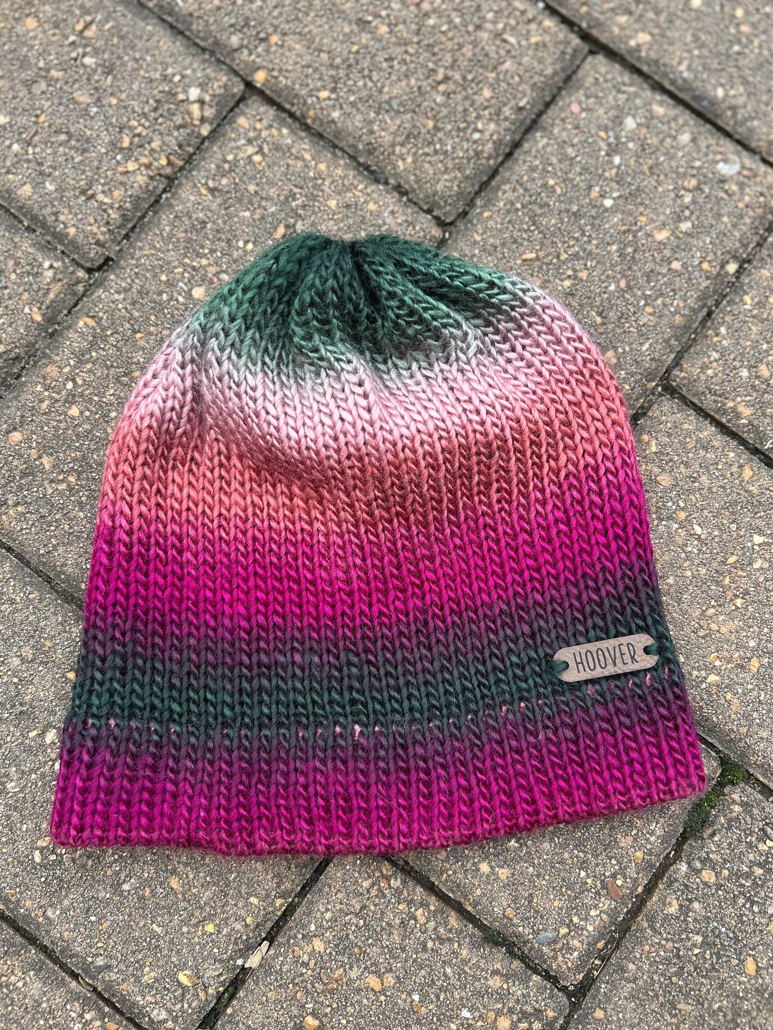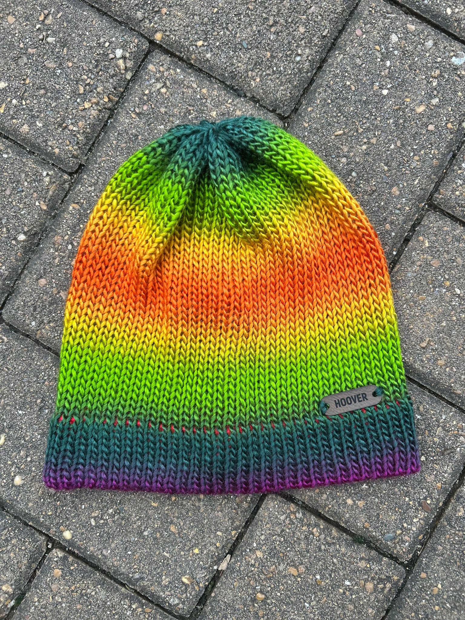 Silky soft variegated acrylic Manarola beanie. Double thick brim for added warmth.