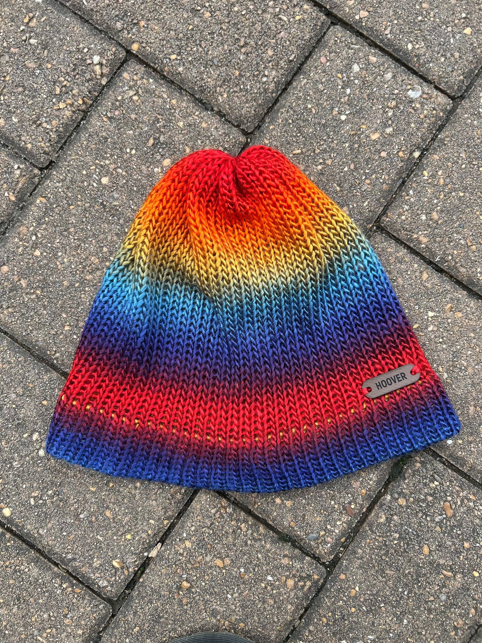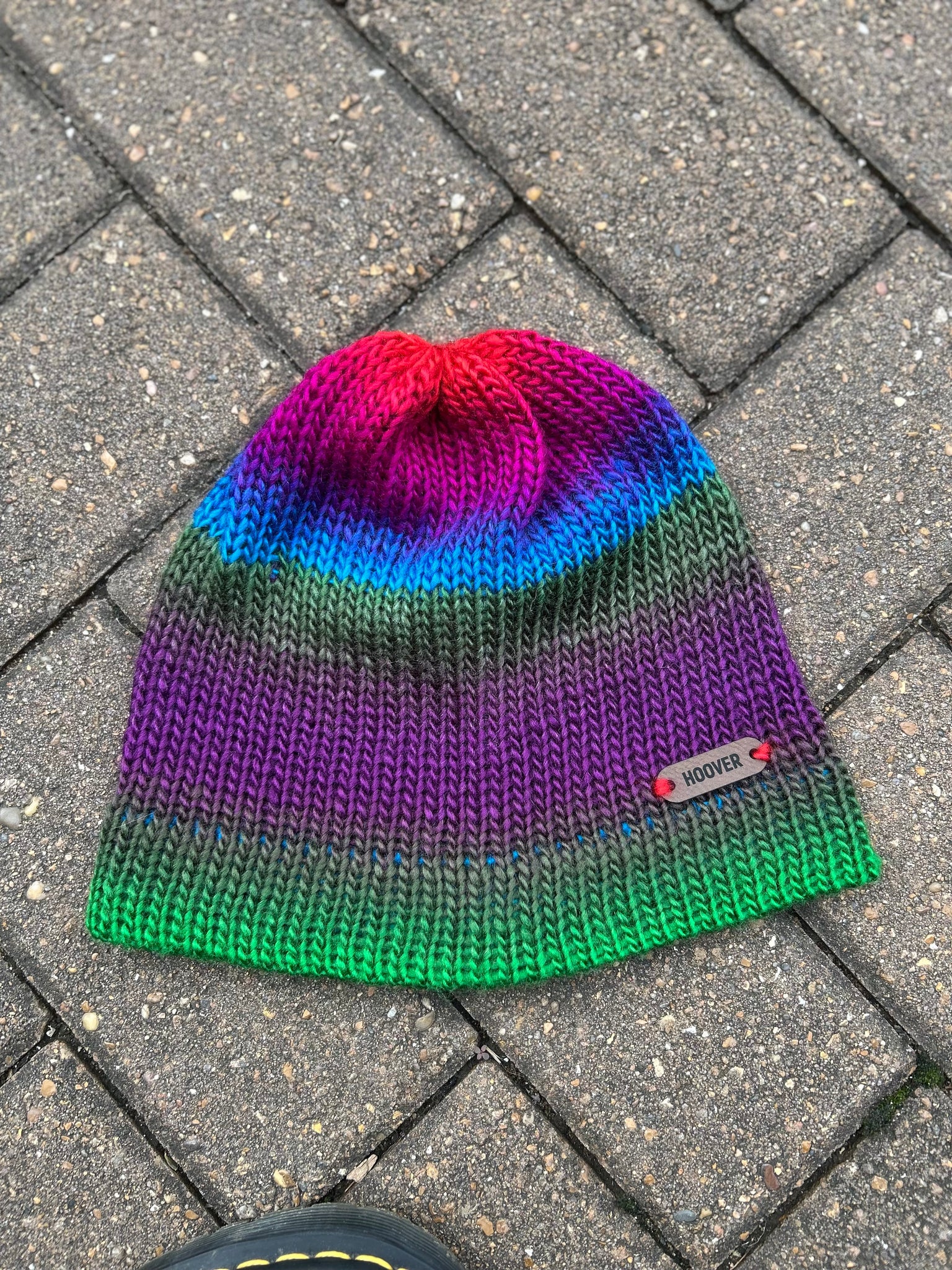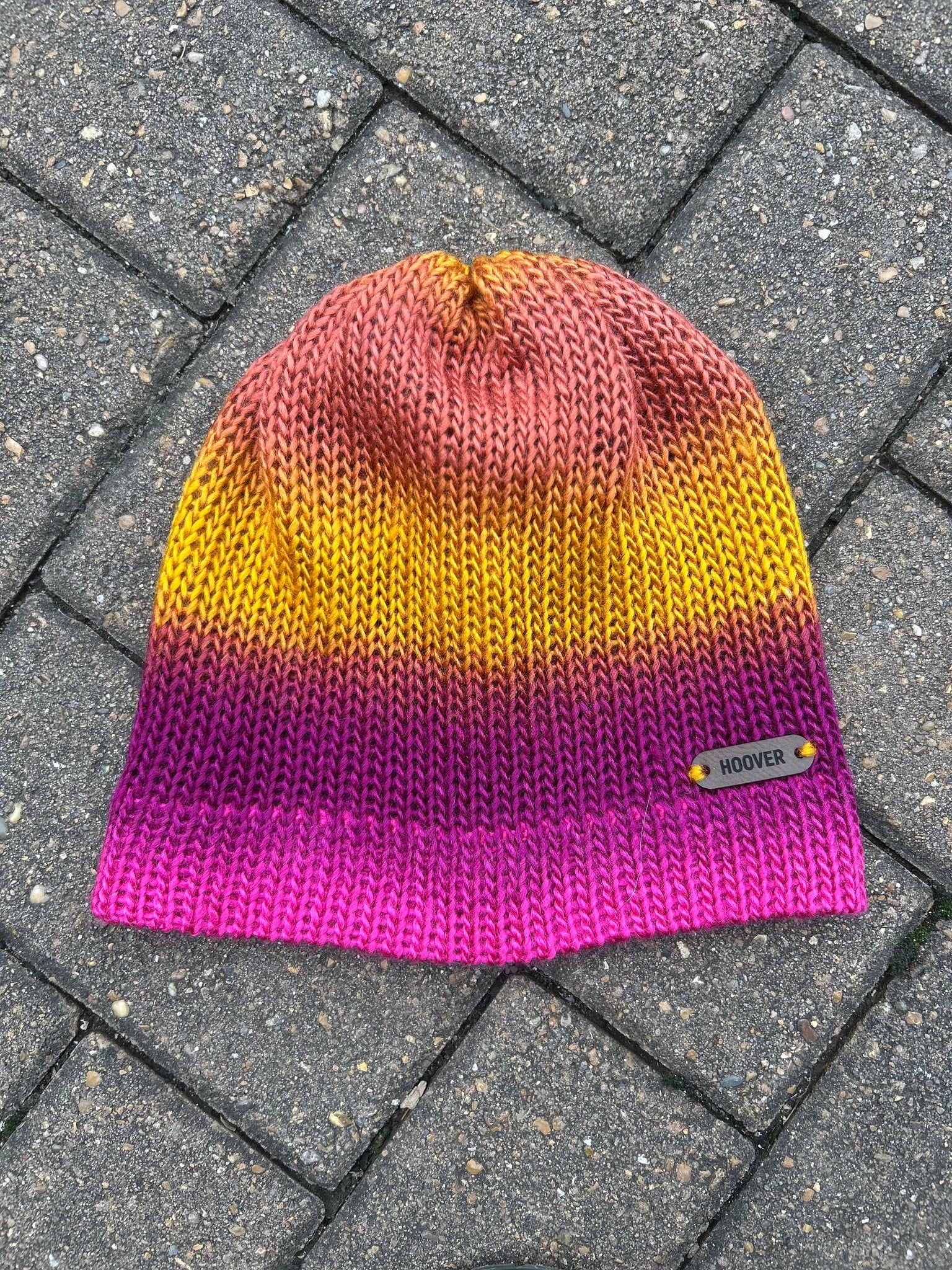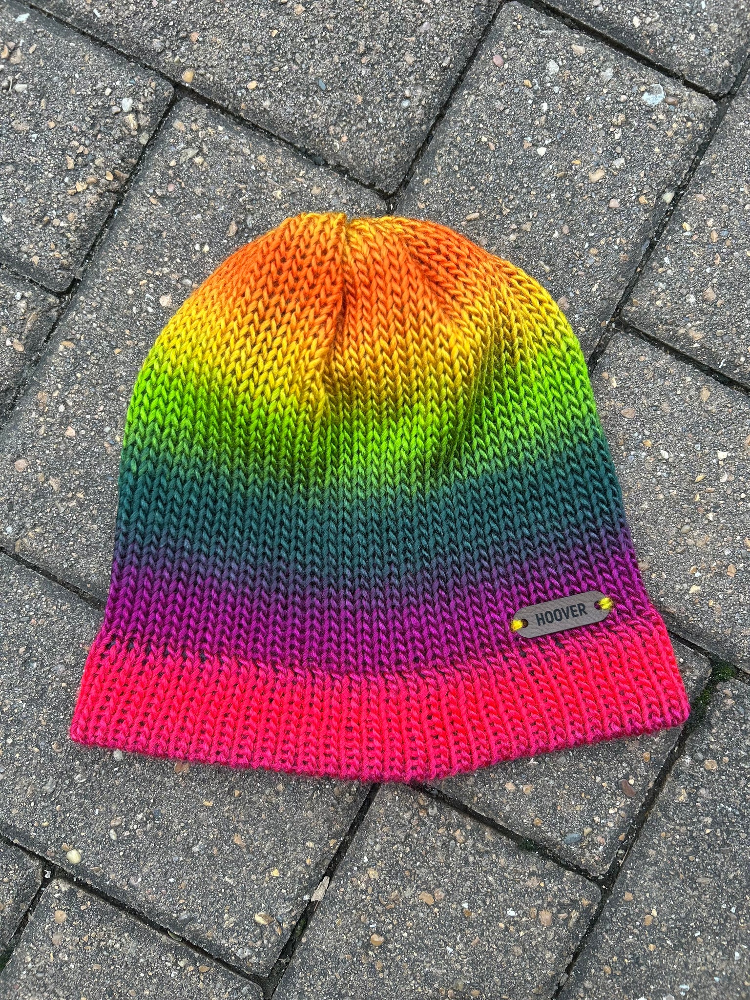 Silky soft variegated acrylic Manarola beanie. Double thick brim for added warmth.