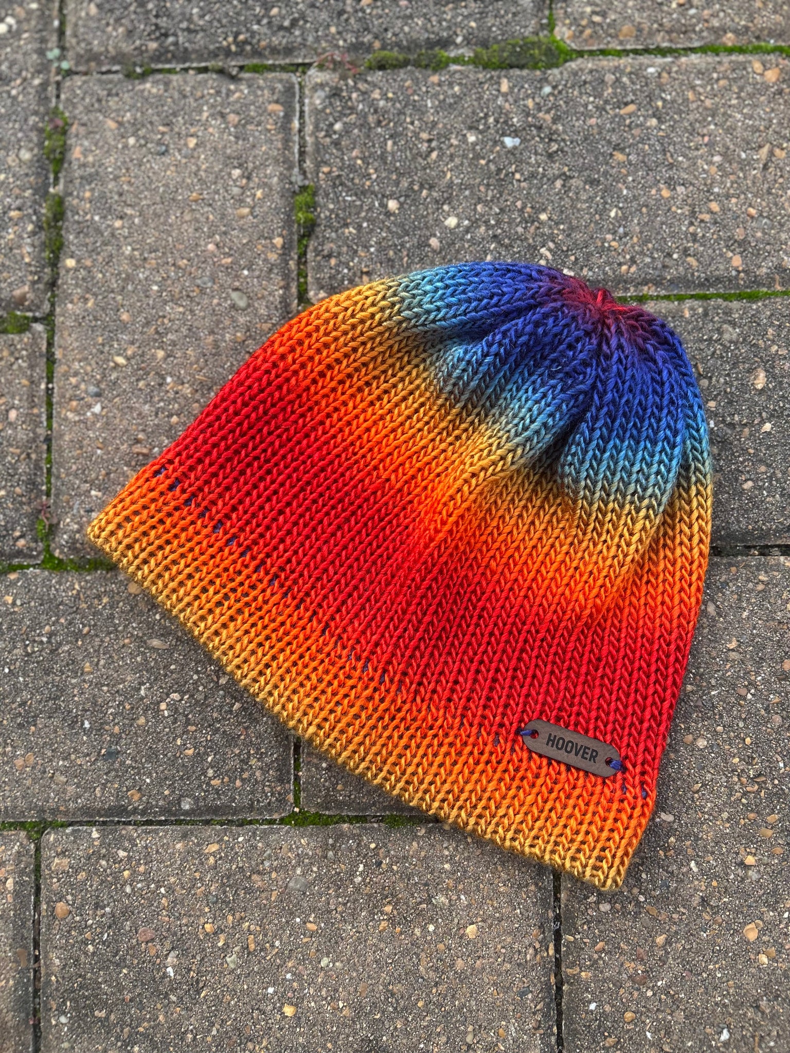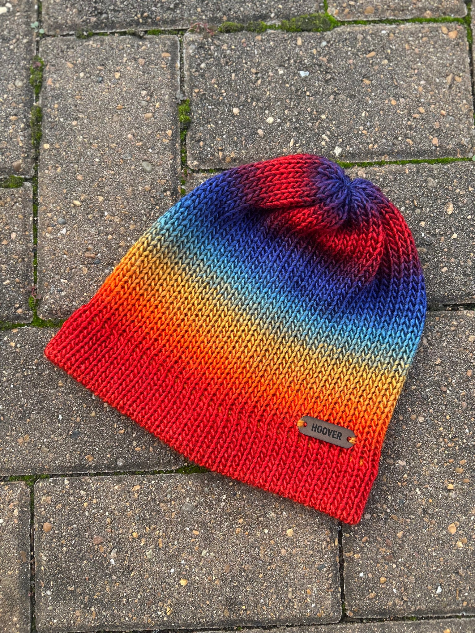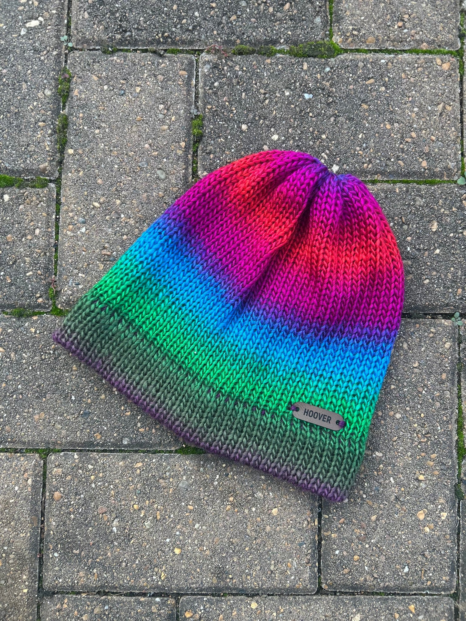 Silky soft variegated acrylic Manarola beanie. Double thick brim for added warmth.