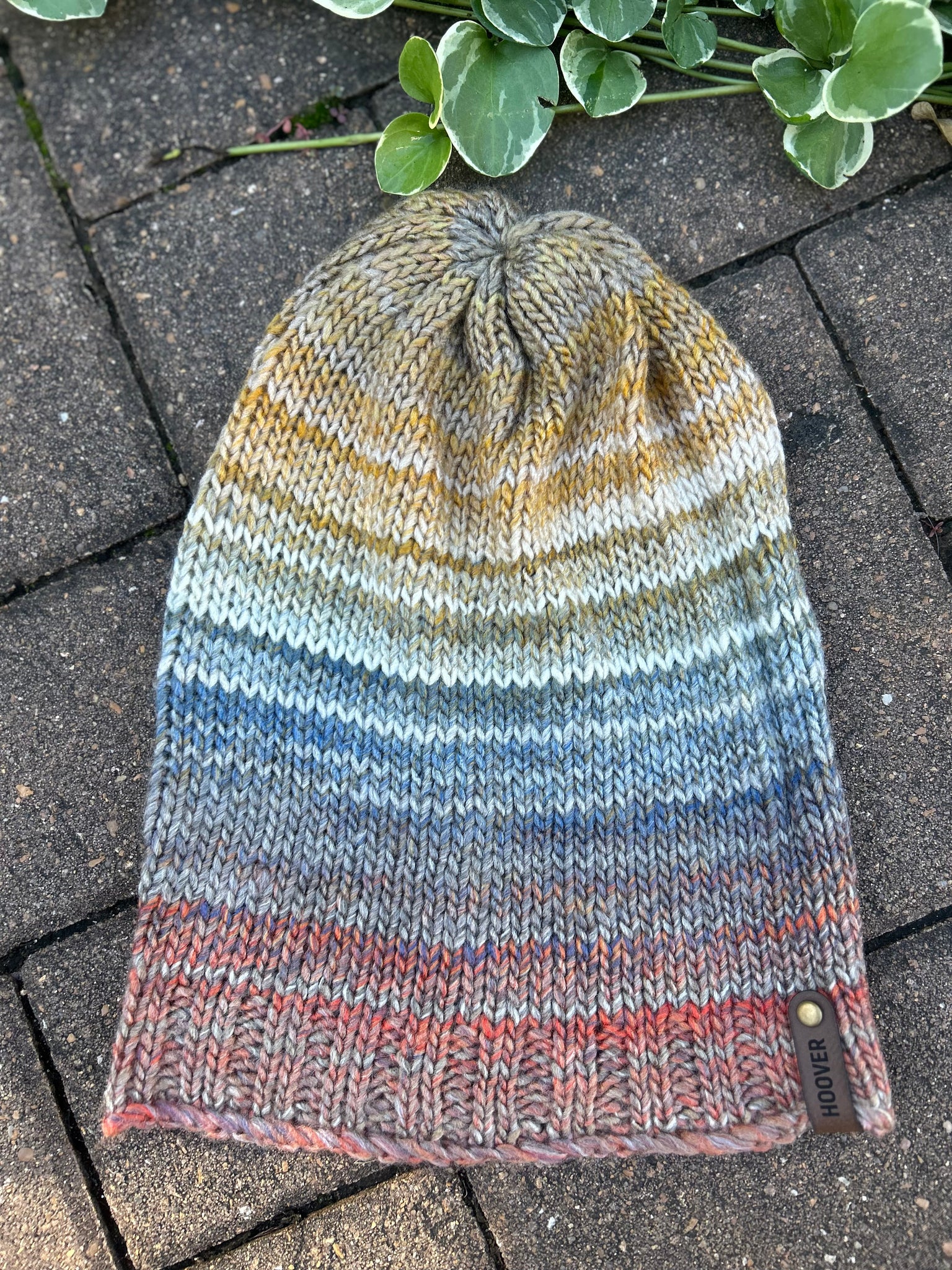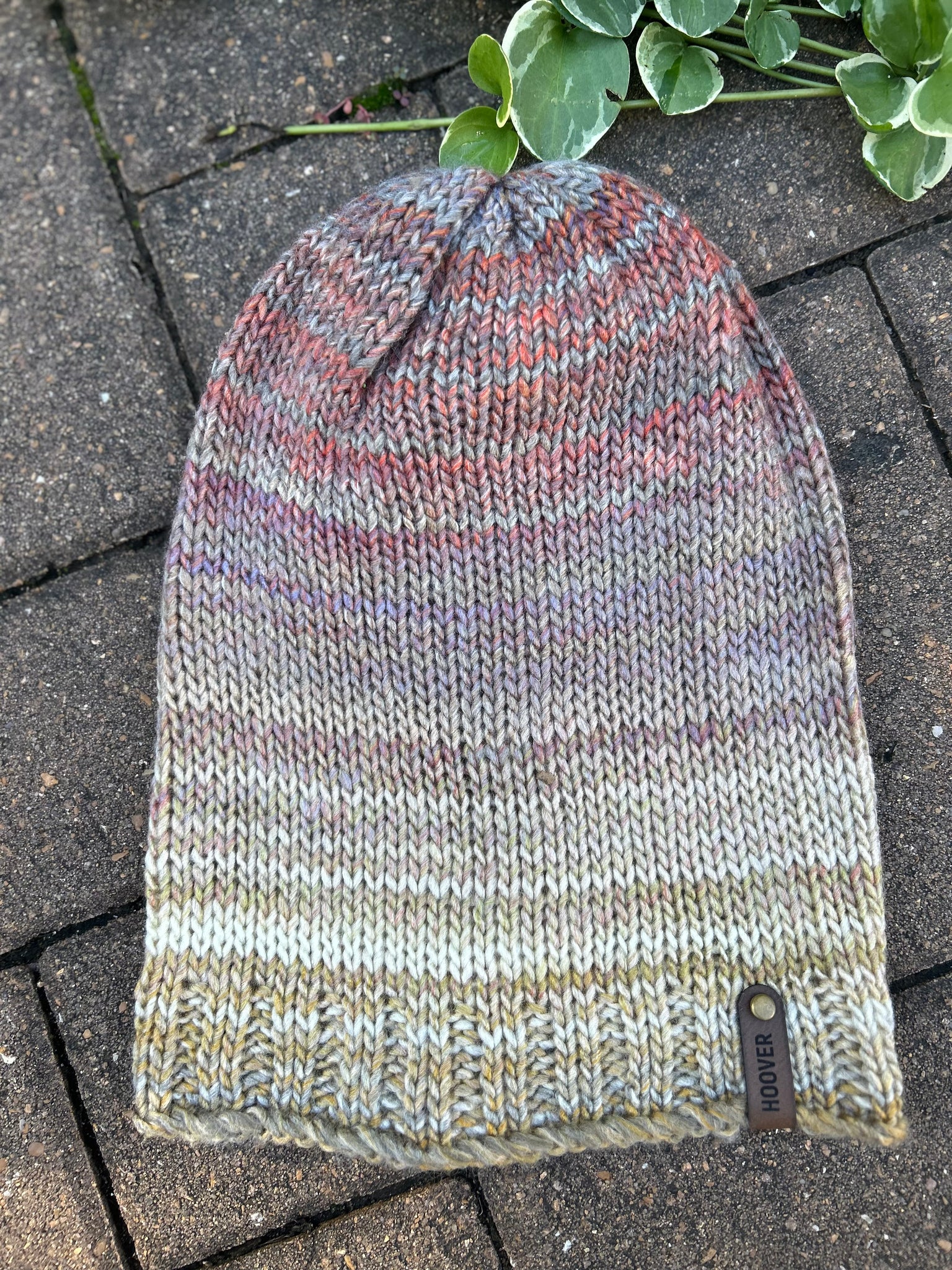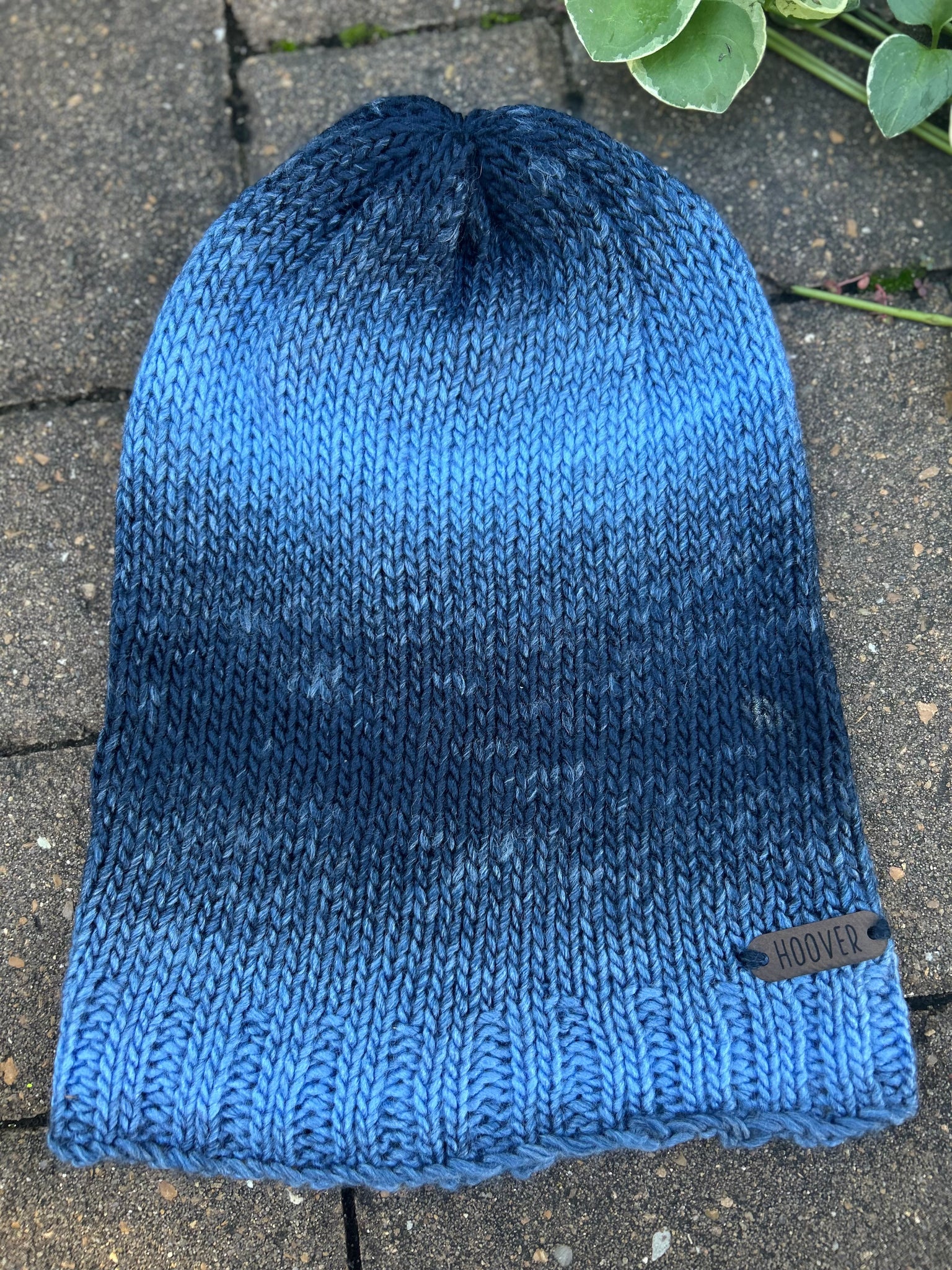 Feather weight and feather soft acrylic Marble slouch beanie. Ribbed brim can be cuffed for a closer fit.